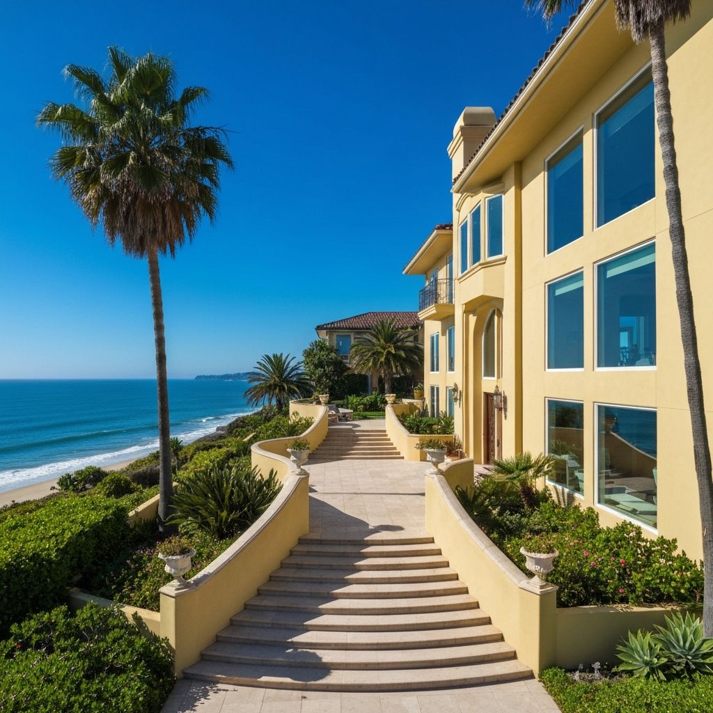 Elegant 5-bedroom beachfront estate with private beach access, wine cellar, and state-of-the-art amenities.