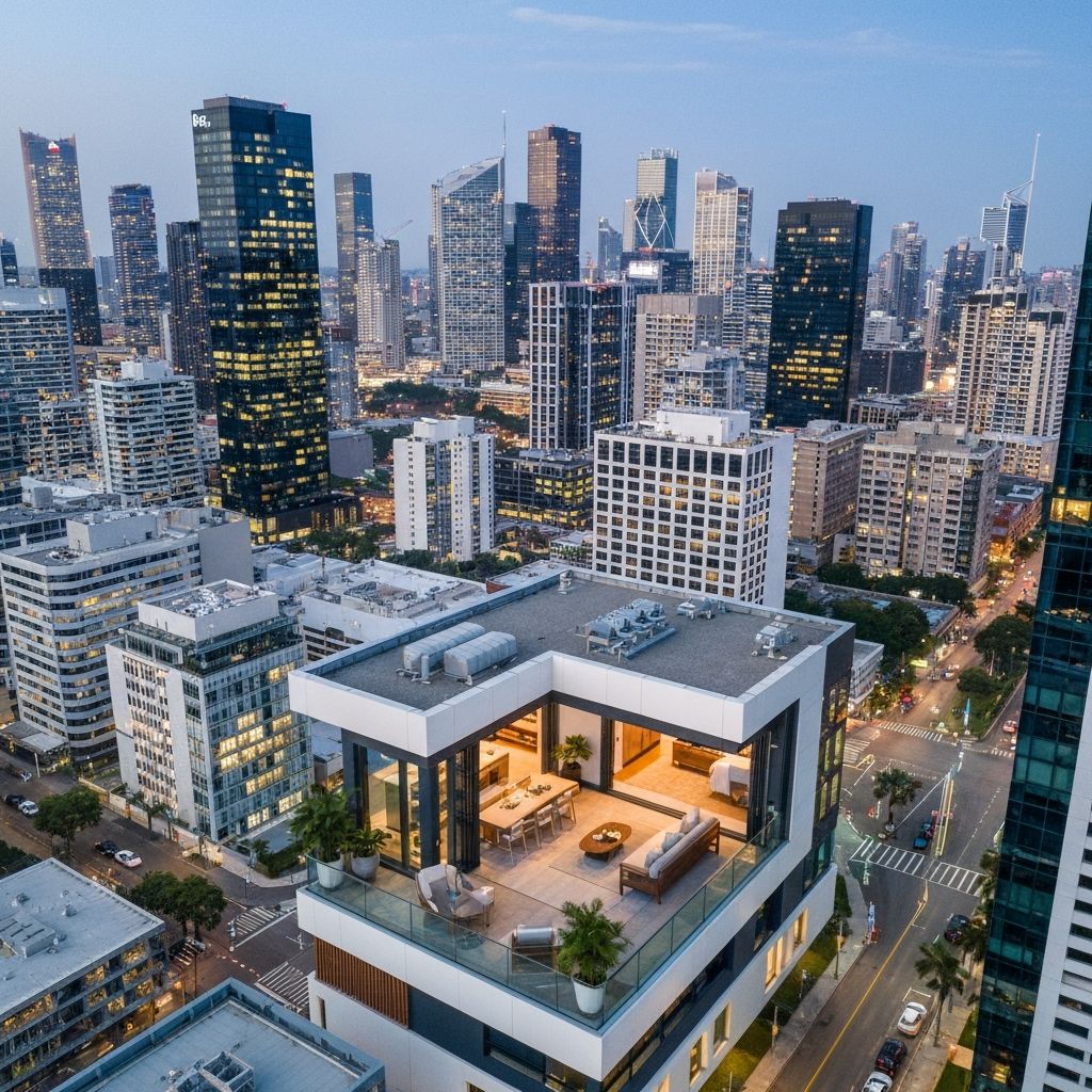 Luxurious 3-bedroom penthouse featuring floor-to-ceiling windows, rooftop terrace, and breathtaking city views.
